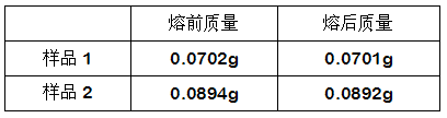 1. 通過試驗發現,該足金吊墜熔融前后的質量、金含量變化甚微,說明該樣品由足金制成,未附著在有機物材質(如塑料、特種紙質等)基底上。