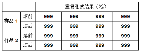 在無損狀態下測試樣品質量、金含量、密度等參數,然后將樣品熔融,再次測試相同參數,通過對比熔融前后的數據變化,判斷樣品是否附著在有機材質基底上。